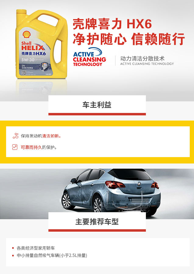 型號:喜力HX6 4L 5W-30 SN 機(jī)油分類:半合成機(jī)油 機(jī)油級別:SN 容量:4L